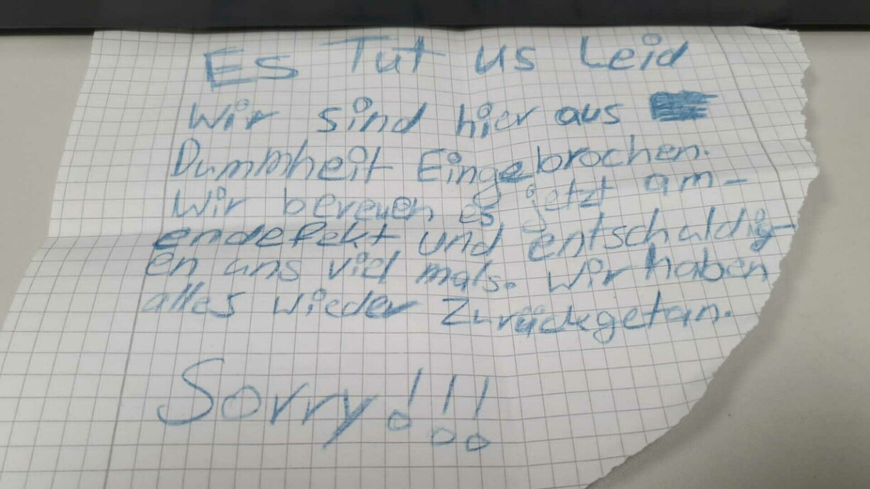 Dräi Persounen hunn an der Nuecht op e Freideg Äerdbier a Cremant matgoe gelooss, ouni dofir ze bezuelen. Houfreg op hiren Déifstall waren d’Déiwen allerdéngs net. Séier hat si e schlecht Gewësse geplot. An engem Bréif hu si sech fir den Abroch entschëllegt a geschriwwen, si wieren aus “Dommheet” agebrach. Dowéinst hu si déi geklaute Wuer och nees zeréckbruecht.