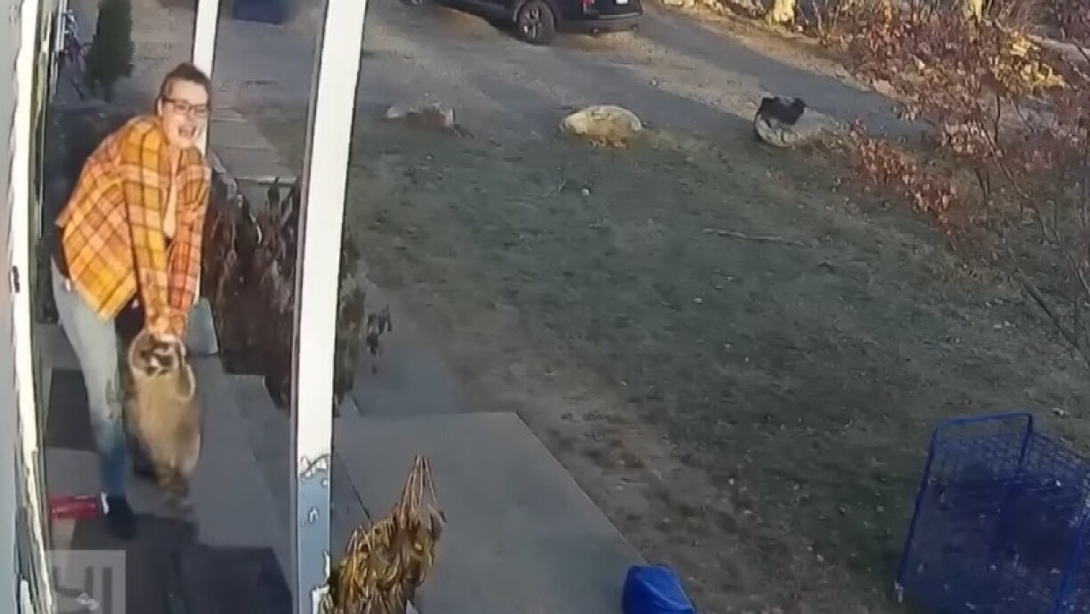 Als éischt huet d’Fra emol d’Meedchen an de Wäschbier getrennt, d’Meedchen an d’Haus gelooss an d’Noperen iwwert de “Racoon” informéiert. Fir selwer net nach vum Déier attackéiert ze ginn, huet si Schwong geholl an den Aggresseur an d’Wiss virun der Dier gehäit, éier si sech selwer an d’Haus gerett huet.