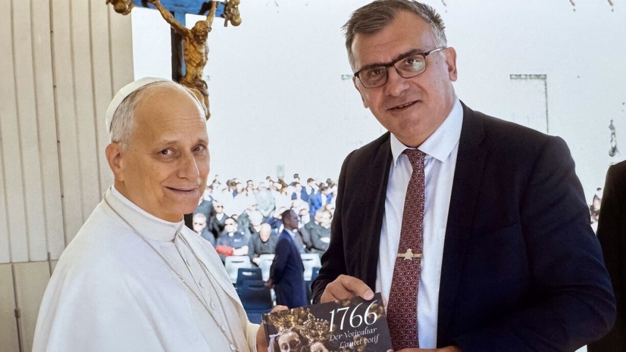 De Marc Schoentgen, haaptberufflech Polizist, Chef de Service vum Service Palais, Responsabel fir d’Protection des lieux vun den dréi Groussherzogleche Residenzen, huet an de leschte Joren als Fotograf och ëmmer nees mat Initiativen, Publikatiounen oder Ausstellungen op sech opmierksam a sech en Numm am In- an Ausland gemaach. Lescht Woch duerft de Fotograf an Auteur als Invité un der Generalaudienz op der Péitersplaz deelhuelen. Uschléissend un d’Audienz konnt hien de Poopst Leo XIV. perséinlech treffen a sech kuerz ënnerhalen an huet dem Pontifex als Kaddo säi Buch “1766 - Der Votivaltar“ iwwerreecht.