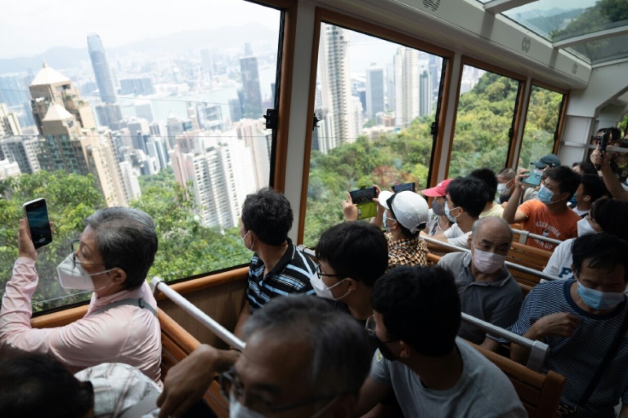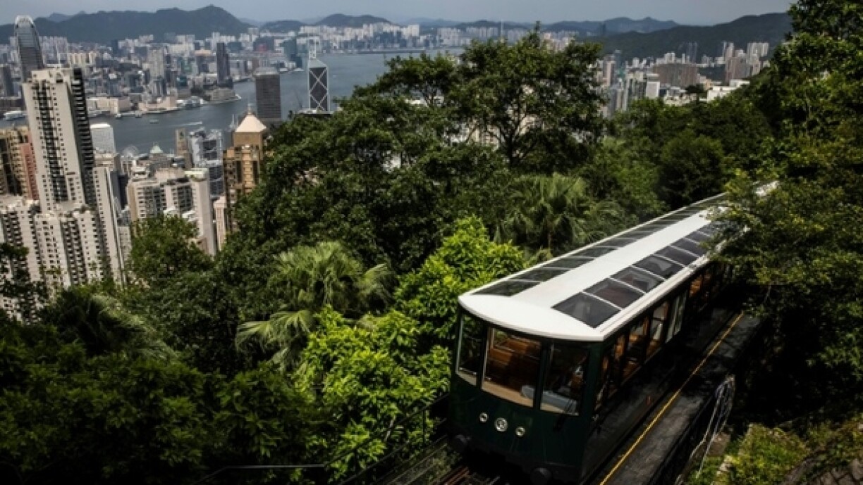 Elo hofft déi chinesesch Metropol nees, trotz de Coronarestriktiounen, hirem Ruff als beléiften Touristendestinatioun gerecht ze ginn. De Peak Tram fiert vum Geschäftszentrum erop op de Bierg Victoria Peak.