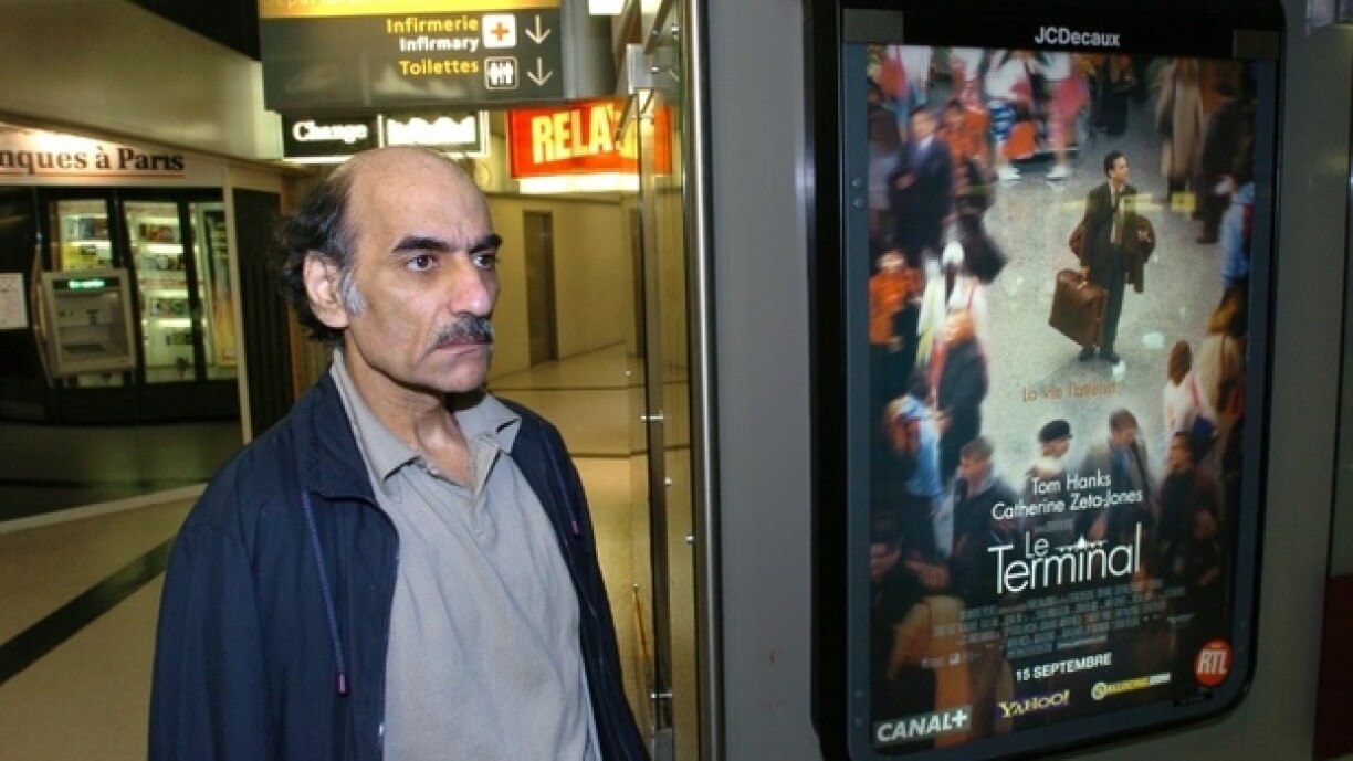 De 77 Joer alen Iraner Merhan Karimi Nasseri ass e Samschdeg am Terminal 2F un engem natierlechen Doud gestuerwen, heescht et aus Fluchhafekreesser. 18 Joer laang war dat säin Doheem, well him déi néideg Pabeiere gefeelt hunn, fir nees a seng Heemecht ze fléien.