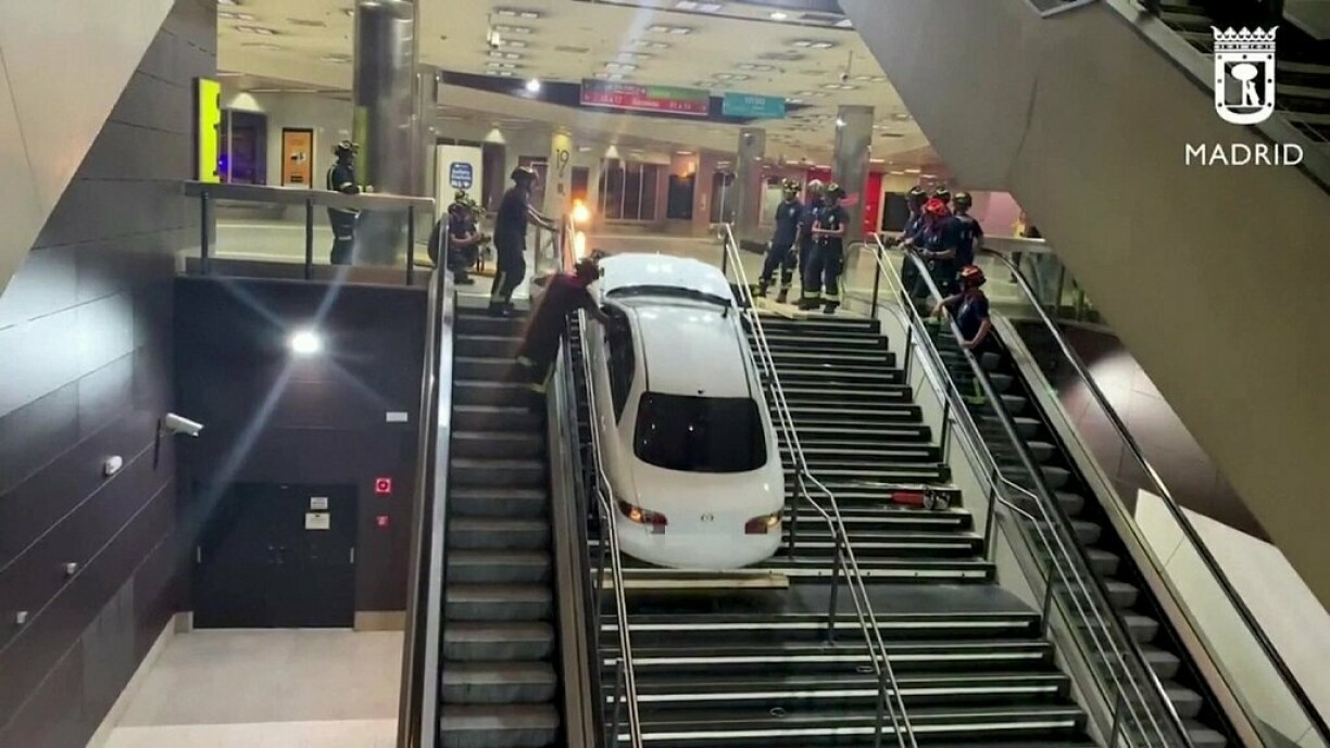 Wou de Mann dunn nees aus der Metrosstatioun erausfuere wollt, ass hien an der Trap hänke bliwwen. Den Autosdéif konnt mam Auto weeder no vir, nach no hanne fueren. Weider konnt hien och net aus dem Auto erausklammen, well d’Clôturen hie blockéiert hunn. D’Police vu Madrid huet e Video vun der kuriéiser Zeenerie online gestallt.