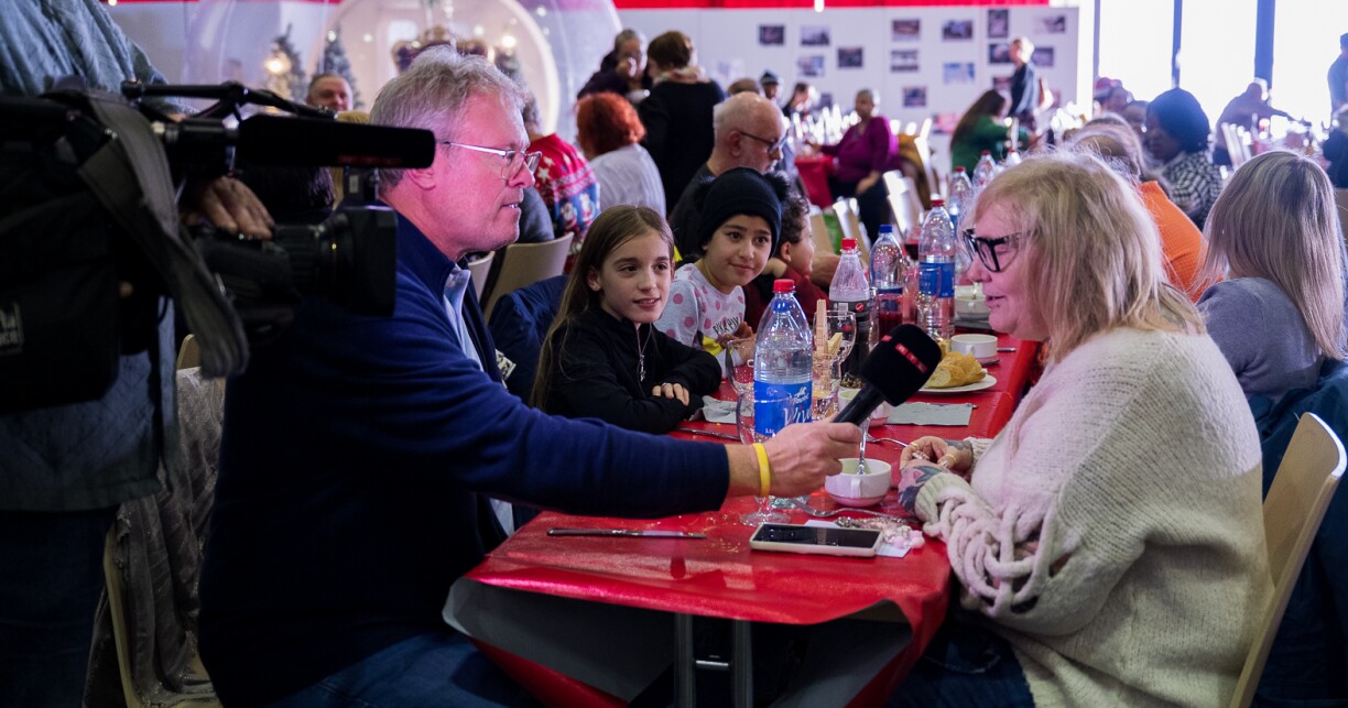 Et ass Donneschdeg kuerz virun 12 Auer a virun der Entrée vun der Victor-Hugo-Hal um Lampertsbierg sti scho vill Leit an der Rei. Si waarden drop, dass d’Diere vun der aler Ausstellungshal opginn. “D’Aarmut am Land klëmmt. Och d’Prekaritéit zitt sech mëttlerweil duerch all d’Gesellschaftsschichten”, sou de President vum Conseil d’Administration vun der Stëmm, den André Duebbers. “Jonker, Aler, Working poor. Sou eng Feier ass immens wichteg fir dës Leit”, betount den André Duebbers am Interview.