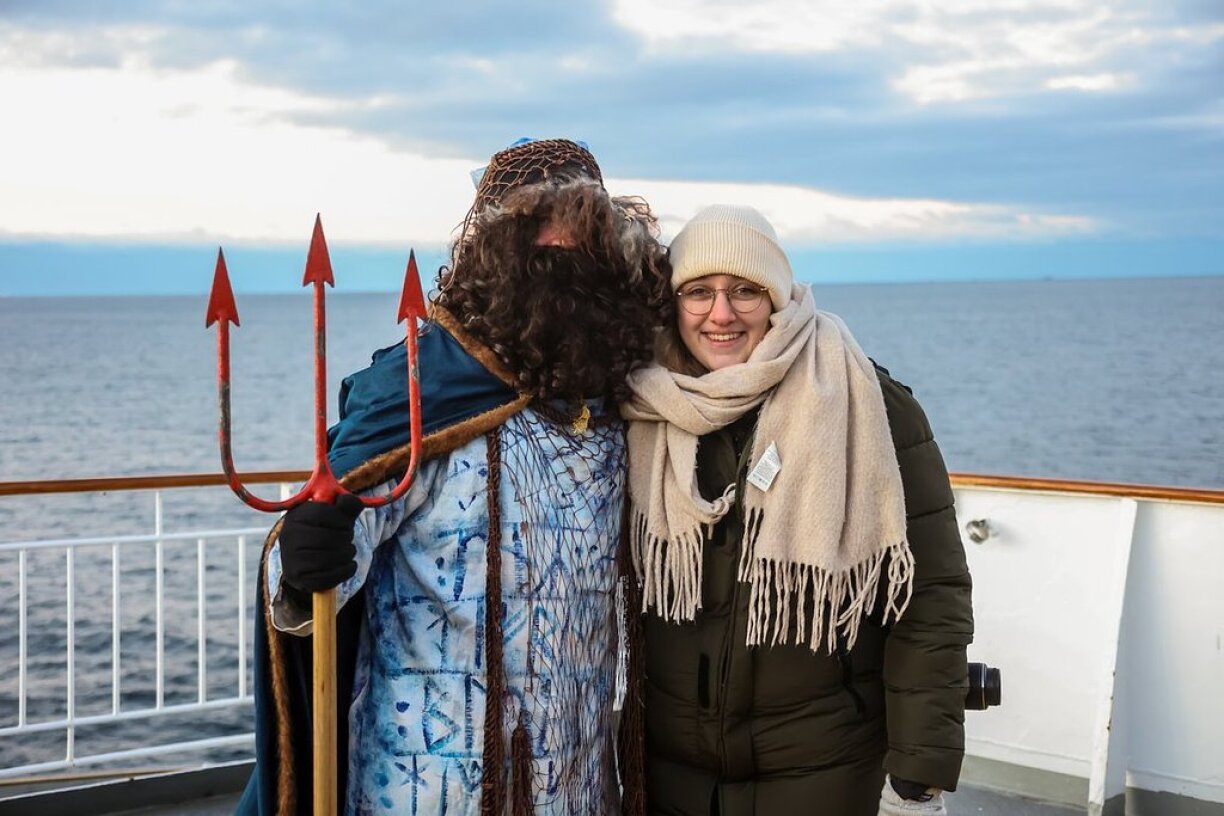 Uschléissend war eng Zeremonie, wou den Neptun koum a jiddereen mat Äiswaasser gedeeft huet.
