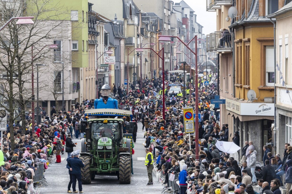 Den Depart vum traditionelle Cortège ass dann e Sonndeg um 14.11 Auer bei der Porte de Lamadelaine. Duerno geet et iwwer e Parcours vun 2,5 Kilometer duerch d’Rue de Longwy, d’Rue de Luxembourg an d’Rue de l’Eglise.