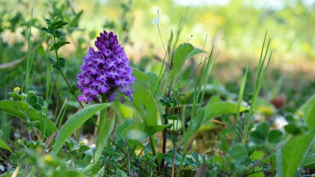 “Dat ass d’Pyramiden-Hondswuerzel (Anacamptis pyramidalis), déi wuel déi opfällegst vun den heemeschen Orchideeën ass. Dës Wisenorchidee huet e laange Still, sou dass déi opfälleg gefierfte Bléie scho vu wäitem gutt ze gesi sinn. Et ass och eng vun deenen Aarten, déi sech an de leschte Joerzéngte wieder ausbreeden, sou wéi och d’Bock-Rimmerzong oder d’Beien-Aperhoerorchidee. Am ganze sinn zu Lëtzebuerg der aktueller Rouder Lëscht no 45 Orchideeën-Aarten heemesch, dovu sinn der allerdéngs 9 zum Deel scho viru laanger Zäit ausgestuerwen. 14 Aarte si bedreet oder staark bedreet. Orchideeë wuessen a verschiddene Liewensraim: am bekanntste si vläicht déi kallekräich Dréchewiss-Standuerter, awer et fënnt ee se och an de Bëscher an a Mooren a fiichte Wisen.”