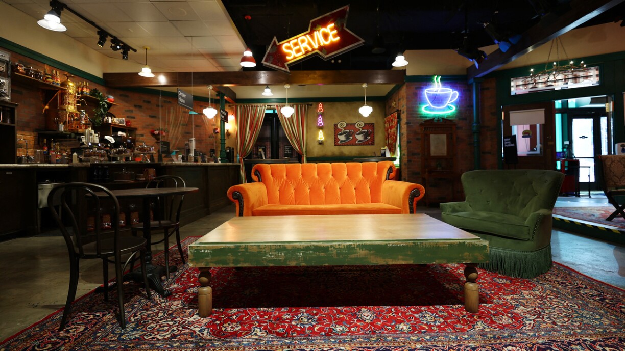 De Café Central Perk - e Wuertspill zesummegesat aus dem New Yorker Central Park an dem englesche Wuert perk fir monter maachen zum Beispill duerch Kaffi - spillt jo an der Sitcom eng zentral Roll. Et ass den “Treffpunkt vun der Clique an d’Häerzstéck vun der Serie”, wéi de Chef vu Warner Bros. Discovery Global Experiences, de Peter van Roden, erkläert huet.