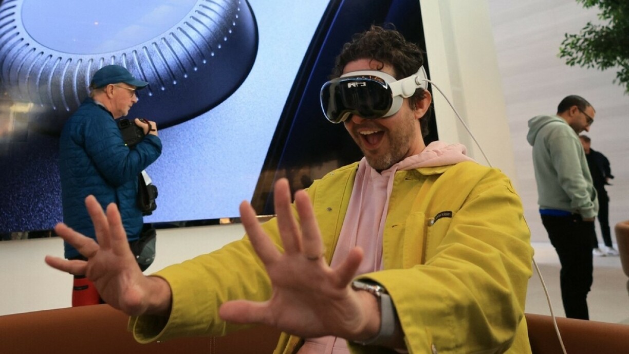 Bei dësem Brëll, deen de Mann hei unhuet, handelt et sech ëm den neiste Gadget vun Apple, déi sougenannte “Vision Pro”. Dat ass awer weder e Virtual Reality-Brëll, nach e Brëll fir Augmented Reality; Technologien, déi dem Grand-Public jo mëttlerweil méi oder manner bekannt dierfte sinn. Déi nei Vision Pro vun Apple léisst den Notzer an déi sougenannte “Spatial Reality” andauchen.