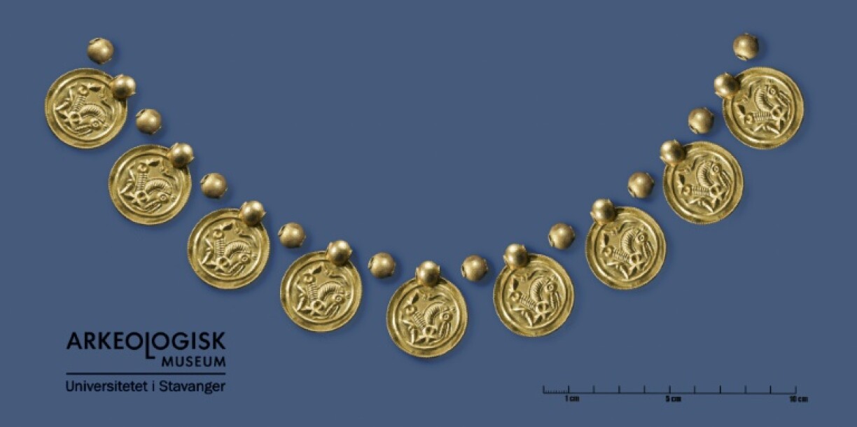 Am éischte Moment hätt hie geduecht, hien hätt Schockela-Mënz fonnt, erënnert sech den Erlend Bore. Séier huet hien dunn awer gemierkt, datt hie Gold-Medaillonen a Gold-Pärele fonnt hat, déi eng Kéier Deel vun enger opulenter Kette waren. Och dräi gëlle Réng huet hien aus dem Buedem gezunn.