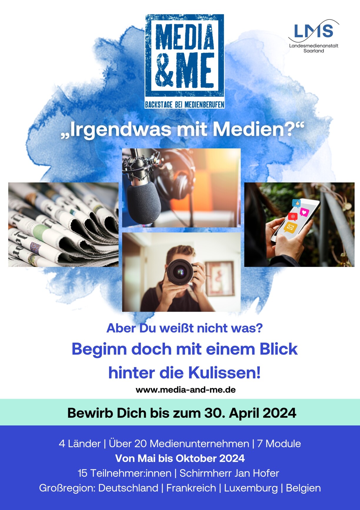De Projet “Media & Me” gëtt organiséiert vum MedienNetzwerk SaarLorLux a Partenariat mat enge 26 Entreprisen an Institutiounen aus der Groussregioun.