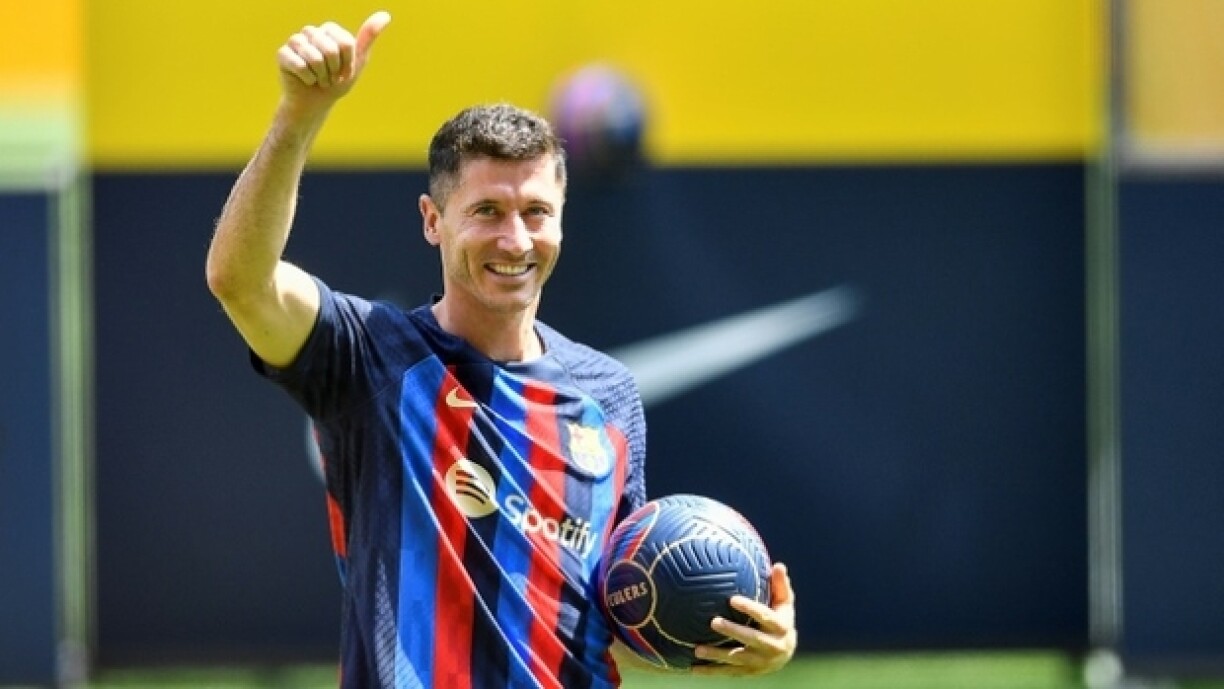 De Lewandowski, deen no aacht Joer bei Bayern München Mëtt Juli fir 45 Milliounen Euro bei den FC Barcelona gewiesselt ass, krut d’Auer vun der Police zeréckbruecht.