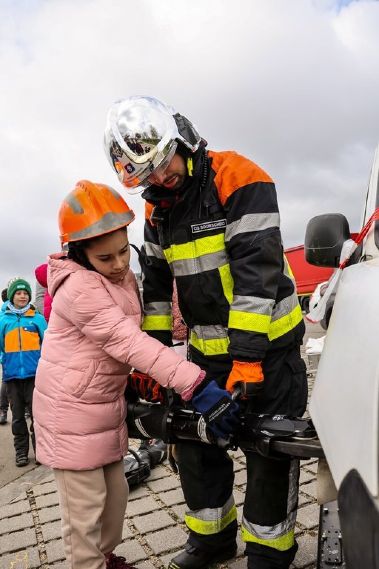Grad esou ass et eng flott Méiglechkeet, de Kanner souwuel déi benevole, wéi och déi berufflech Méiglechkeeten am CGDIS zu vermëttelen. Dëst Joer krute si och un engem abandonéierten Auto gewisen, wéi d’Pompjeeë bei engem Autosaccident eng Dier raushuelen a wéi bei engem Accident geschafft gëtt.