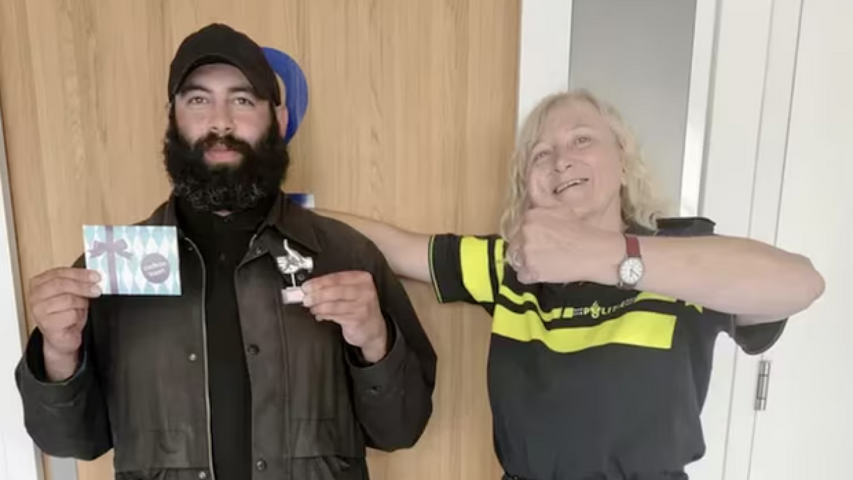 Den Hadjer Al-Ali, deen zanter annerhallef Joer zu Amsterdam op der Strooss lieft, huet international fir Schlagzeile gesuergt, nodeems hien e Sonndeg ee Portmonni an engem Zuch op enger Bänk fonnt huet, wou hien grad a Poubellen no Pfandfläsche gesicht huet. Am Portmonni waren 2.000 Euro Boergeld, awer keng Dokumenter, déi Hiweiser op de Besëtzer ginn hätten. Amplaz d’Suen anzestiechen, huet den éierleche Mann de Portmonni mat de Suen op de Policebüro bruecht.