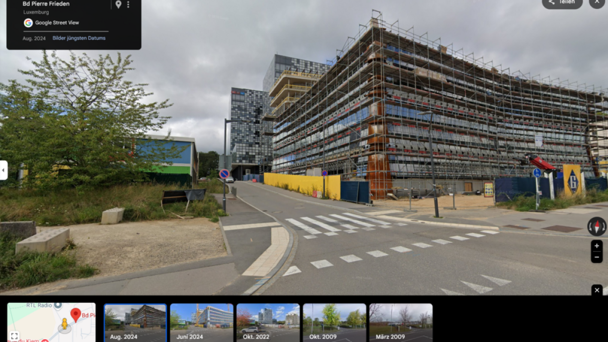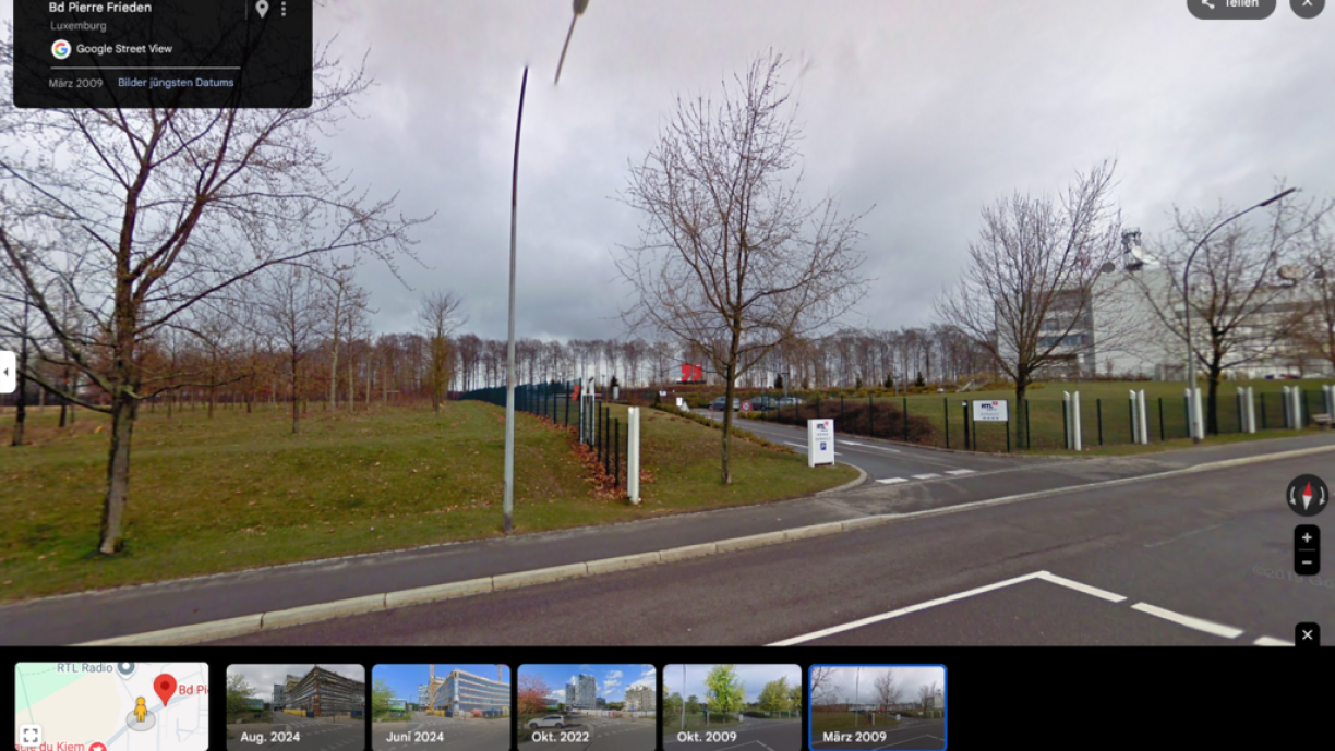 Als Beispill zwee Biller vun der RTL-Adress 43, Boulevard Pierre Frieden um Kierchbierg. Hei d’Bild vun 2009: