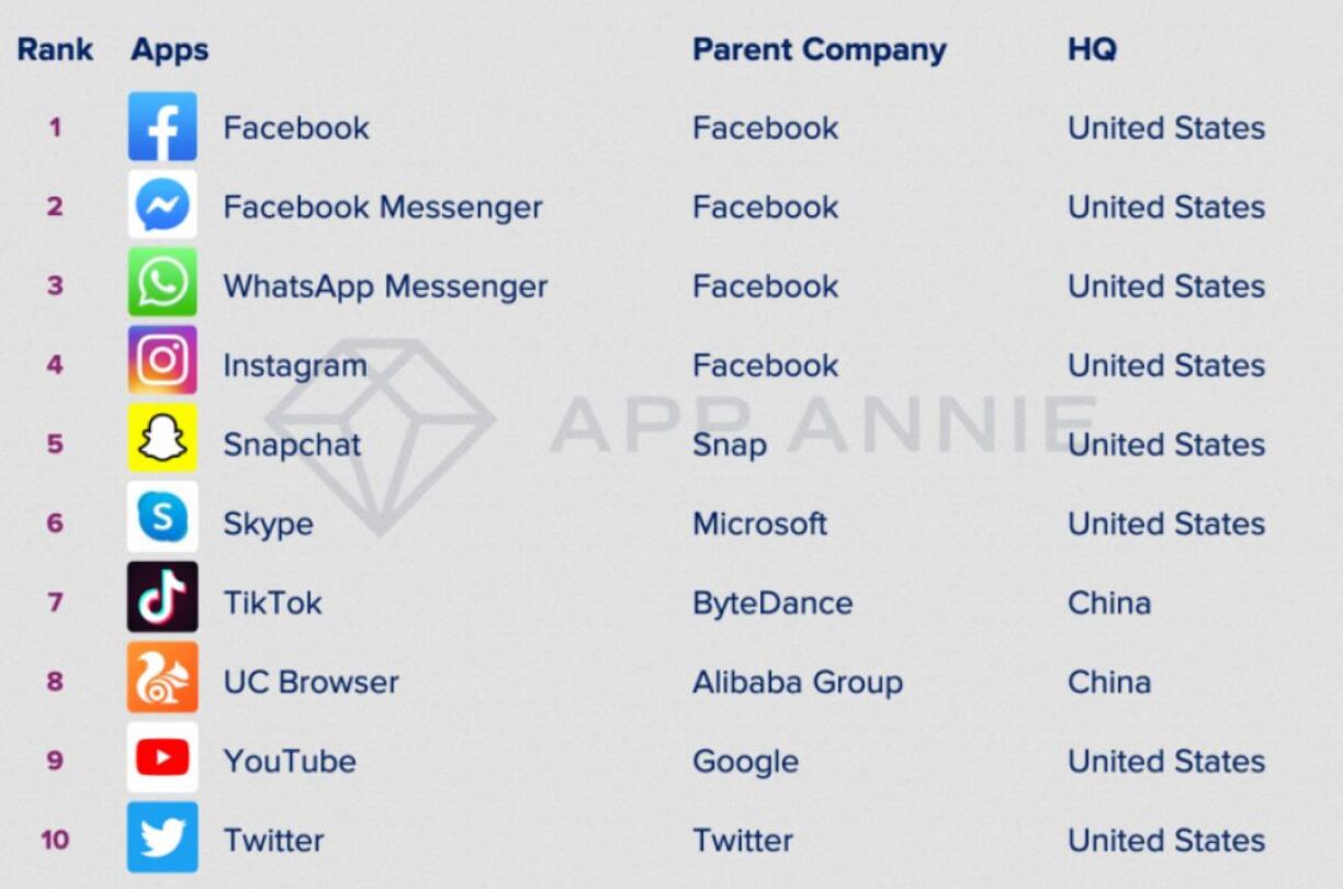 An enger Etüd vun App Annie gouf ënnersicht, op wéi engen 10 Appen d’Notzer tëscht 2010 an 2019 am meeschten Zäit verbruecht hunn a wéi eng am heefegste bannent de leschten 9 Joer erofgeluede goufen.