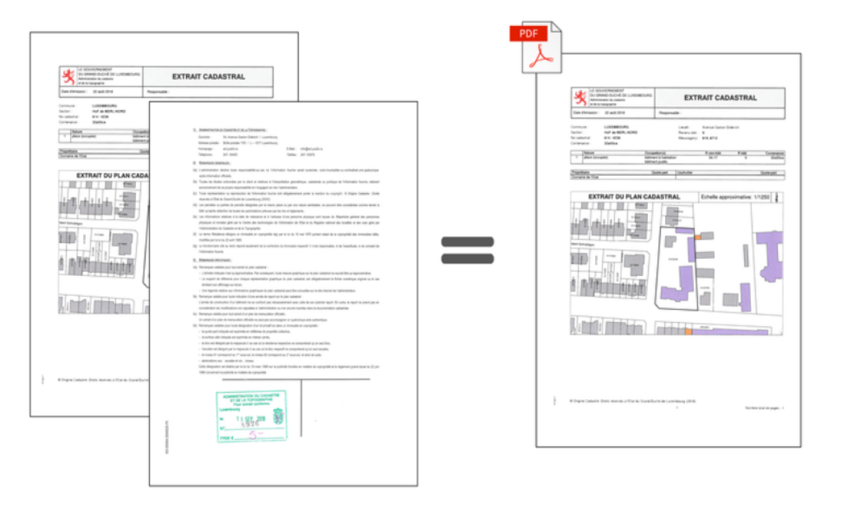 Wann eng Persoun een Extrait aus dem Kadaster oder een topographescht Dokument braucht, gëlle vun elo un déi zwou Versiounen: op Pabeier awer och an enger digitaler Form.