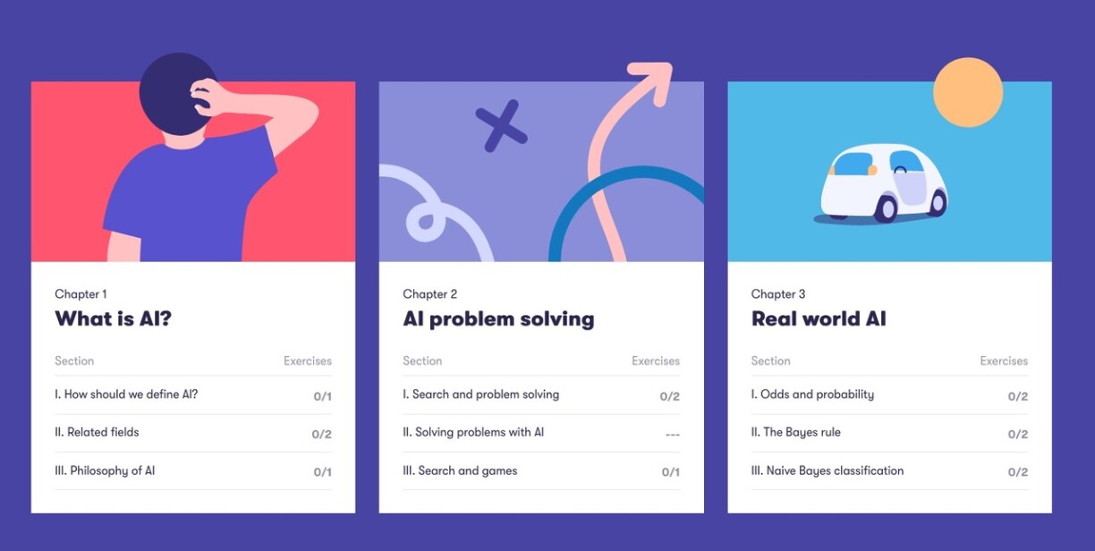 De ganz komplette Cours “Elements of AI” gëtt et bis elo nëmmen op Englesch, Schwedesch, Finnesch an op Däitsch. Hei gëtt zum Beispill eng Presentatioun vun der Wichtegkeet vun der AI proposéiert souwéi och e puer technesch Elementer an och philosophesch a politesch Implicatioune vun esou enger Technologie uechter d’Welt.