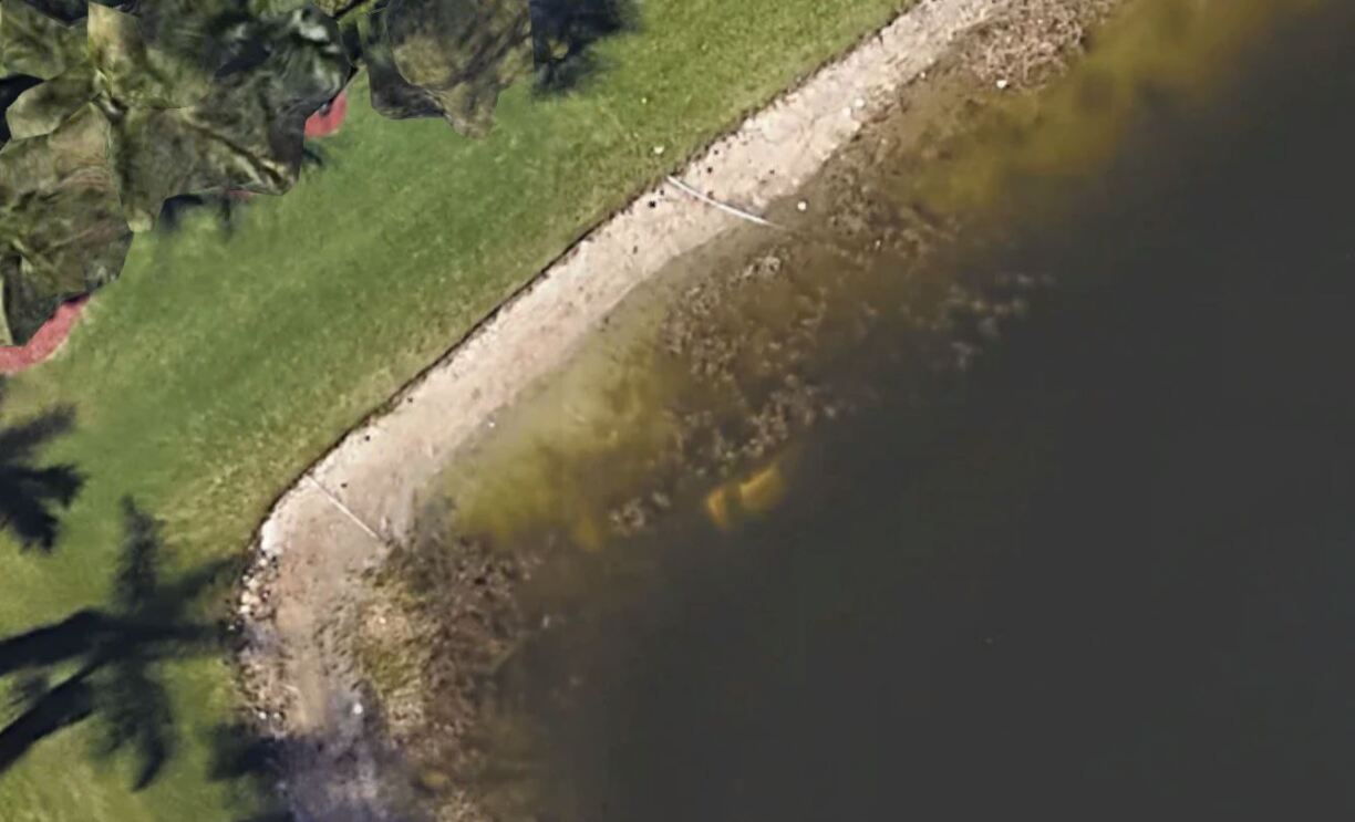 Leschte Summer wollt en Awunner vu Wellington, enger Stad nieft Lantana, mat Hëllef vu Google Maps kucken, wéi säi Grondstéck vun uewen ausgesäit. Um Satellittebild huet hien e Fleck a sengem Weier bemierkt, deen awer net däitlech um Bild ze erkenne war. Doropshin huet hien zesumme mat sengem Noper an deem senger Dron probéiert erauszefannen, wéi ee mysteriéise Géigestand et wier.