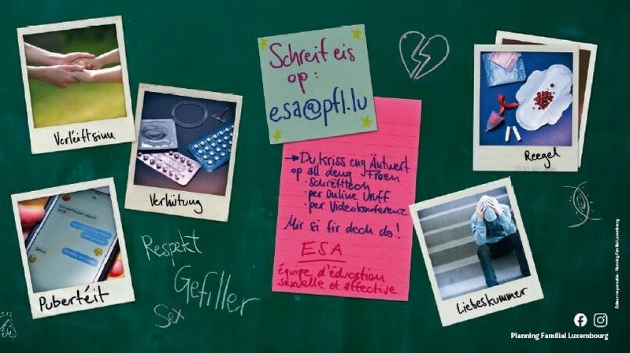 Et ass awer och weiderhi méiglech, de Service via Mail op esa@pfl.lu unzeschreiwen. Neierdéngs kann ee och online Appeller oder Video-Gespréicher maachen. D’Froe gi mat grousser Diskretioun traitéiert a kënnen op Lëtzebuergesch, Däitsch, Franséisch, Englesch a Portugisesch gestallt ginn. Thematiséiert ginn ënnert anerem Sujete wéi Pubertéit, Verléiftheet, Libeskommer, Contraceptioun, Respekt géigeniwwer aneren, Gefiller oder Geschlechter.