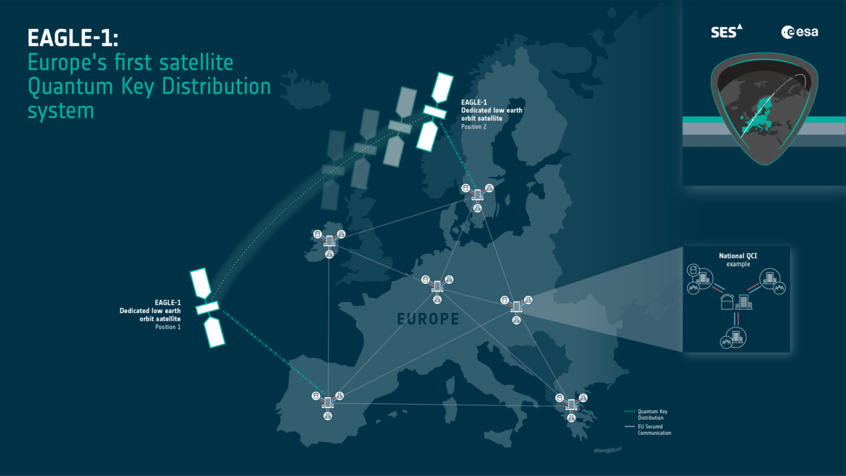 Am Moment leeft verschlësselt Kommunikatioun an Europa op Basis vu mathematesche Formelen iwwer Glasfaser. Den Nodeel ass awer, datt déi Method just iwwer eng Distanz vu bis zu 150 Kilometer funktionéiert, dono zersetzt d’Signal sech an et ka mat Hëllef vu sougenannte Quantecomputere gehackt ginn. Mam Projet “Eagle-1" kéinten d’Donnée par Konter mat Hëllef vu Satellitten als Qubits, also eng Zort Bild, sécher an iwwer méi grouss Distanzen iwwermëttelt ginn. De Ferdinand Kayser, strategesche Beroder vun SES, beschreift d’Roll vun der Lëtzebuerger Entreprise.