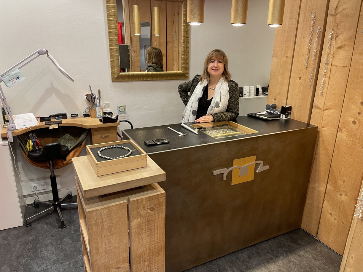 3 mol 1 Fro mam Martine Schmit a Corniche Bijoux am Centre Brasseur an der Groussgaass an der Stad.