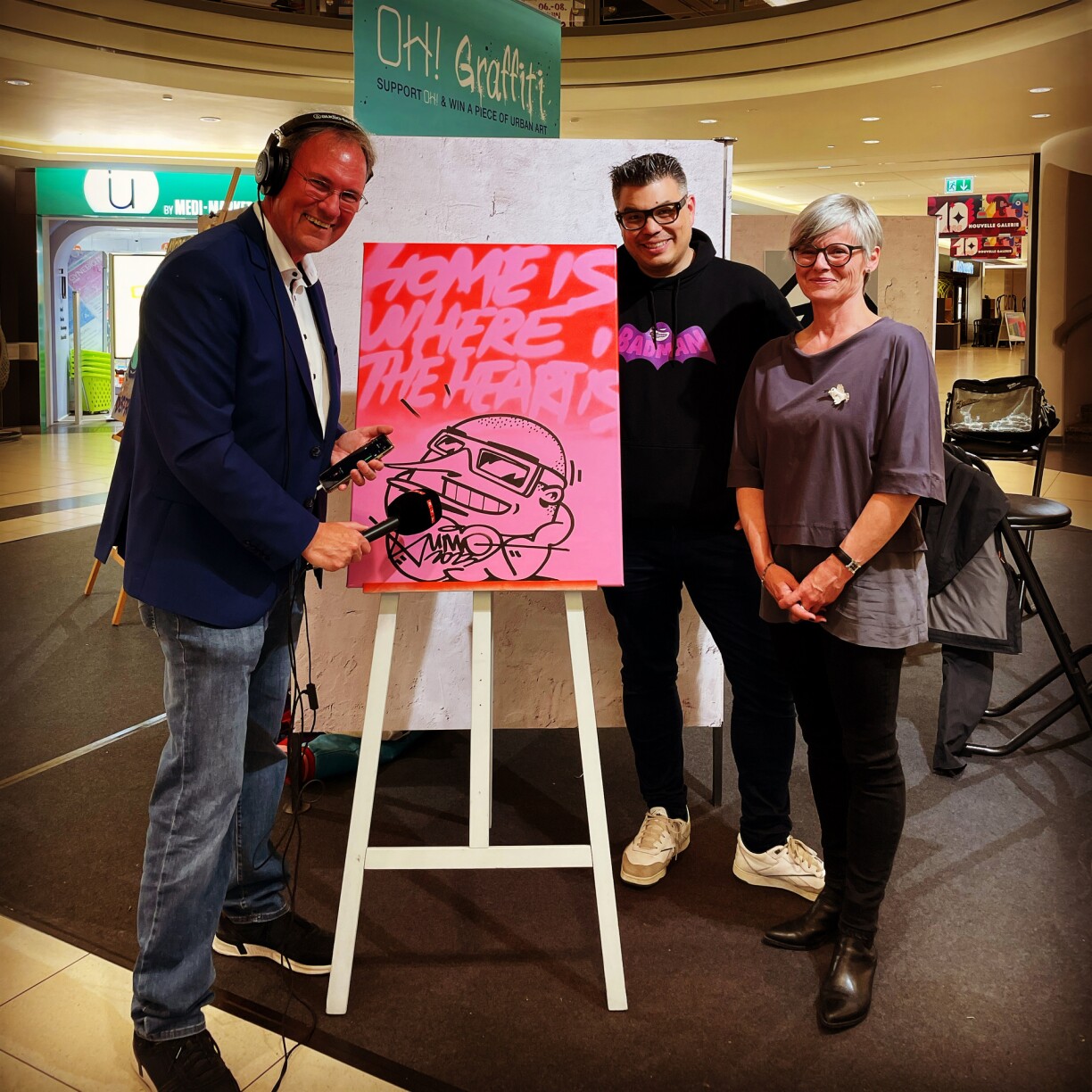 Déi nei Gallerie vun der Belle Etoile huet jo d’lescht Woch hiren 10. Gebuertsdag gefeiert. An deem Kader war jo och déi flott Aktioun “OH! Graffiti“ fir de gudden Zweck! An déi war e vollen Erfolleg! Et goufen an dräi Deeg net manner ewéi 1006 Tombolaslouse verkaaft mat deenen een d’Chance hat fir ee vun den 13 Tableaue vun de Street Art-Kënschtler Sumo, Alain Welter, Raphaël Gindt, Stick, Joël Rollinger, Franco, Mélanie Humbert, Thomas Iser a Snok ze gewannen. D’Gewënner goufe gezunn a kruten déi gutt Nouvelle matgedeelt. Si hu mat all deenen aneren derzou bäigedro, dass esou 5.030 € fir d‘Asbl „Oppent Haus – Open Home“ gesammelt konnte ginn an d’Belle Etoile verduebelt déi schéin Zomm elo quasi nach op ronn 10.000 €! Des Sue kommen also de Flüchtlingen hei zu Lëtzebuerg zegutt fir déi sech d’Associatioun vum Marianne Donven asetzt. E grousse Merci an hirem Numm un all déi, déi déi Aktioun ënnerstëtzt hunn a Felicitatiounen un all d’Gewënner!