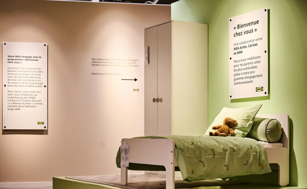Zu dem Thema gëtt et am Ikea zu Arel dann eng Ausstellung fir ze sensibiliséieren. Konkret hëllefen Ikea an den IKANO Grupp awer och um Terrain wou se bis elo 31 centre d’accueilen ënnerstëtzt hunn, an och iwwer 400 Famille gehollef hu mat Don’en fir Arriichtungs Kiten.