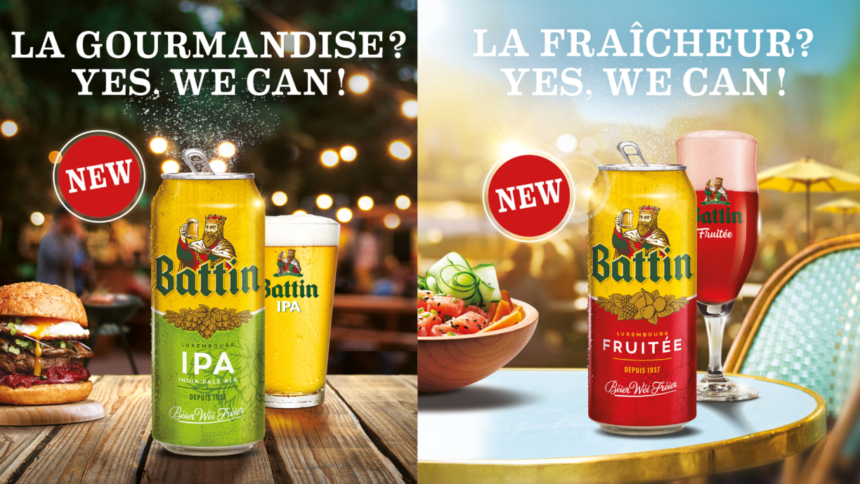 Vun elo un, ginn et dann déi zwou Battinzorten Battin Fruitée a Battin IPA a form vun de beléifte 50cl Dousen.