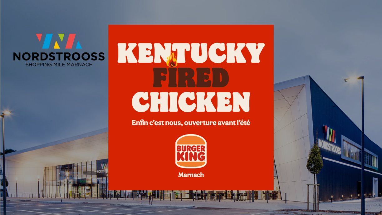 Et gëtt ee Wiessel: Net ee KFC, mee ee Burger King Restaurant wäert am Fréijoer um Site vun der Nordstrooss Shopping Mile zu Maarnech opmaachen. De CEO vu Burger King, Kevin Derycke, erkläert, dass dëst nieft hire 7 Restauranten am Land deen éischten am Norde vu Lëtzebuerg wäert sinn. „Et handelt sech ëm e strategesche Standuert fir d’Entwécklung vun der Mark a fir déi lokal Beschäftegung, well mir 40 Leit sichen, fir eis Equipe ze bilden“ sou de CEO weider.