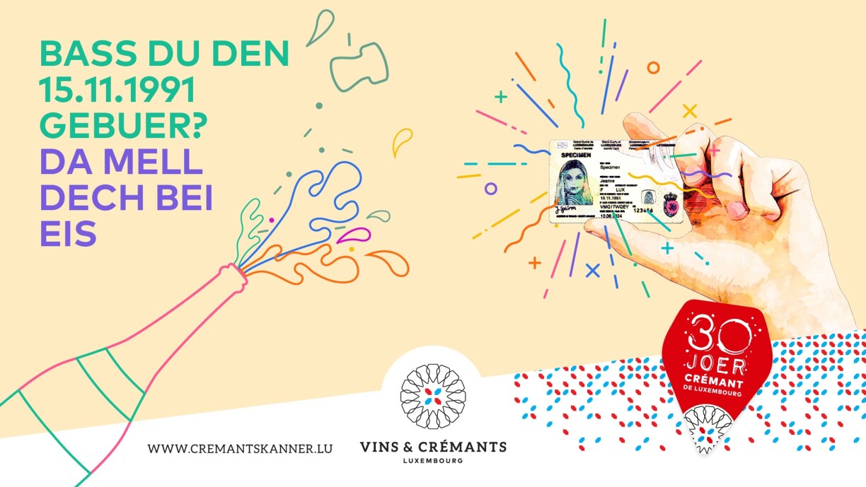 Duerfir mellt Iech elo un op cremantskanner.lu a loosst Iech fir Ären 30. vu Vins & Crémants Luxembourg iwwerraschen.