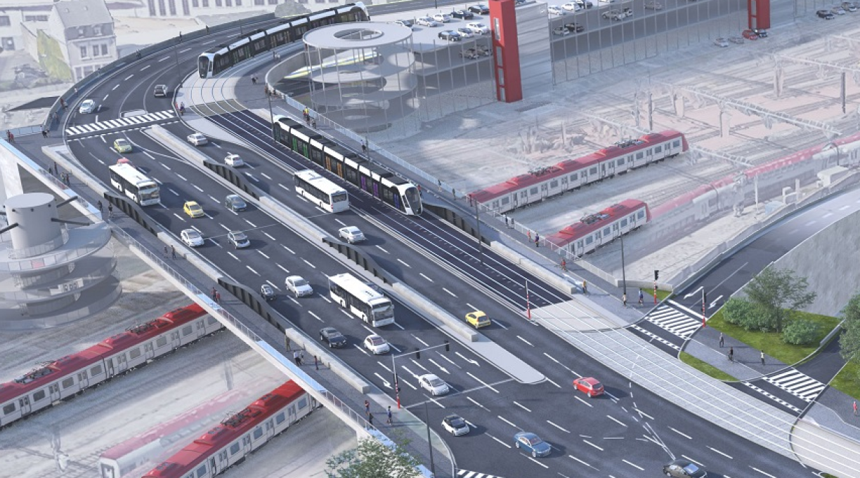 Dat ass do wou den Tram d’Verbindung mat anere Verkéiersméiglechkeeten mécht. Am ganze ginn et dann elo 17 Statiounen.