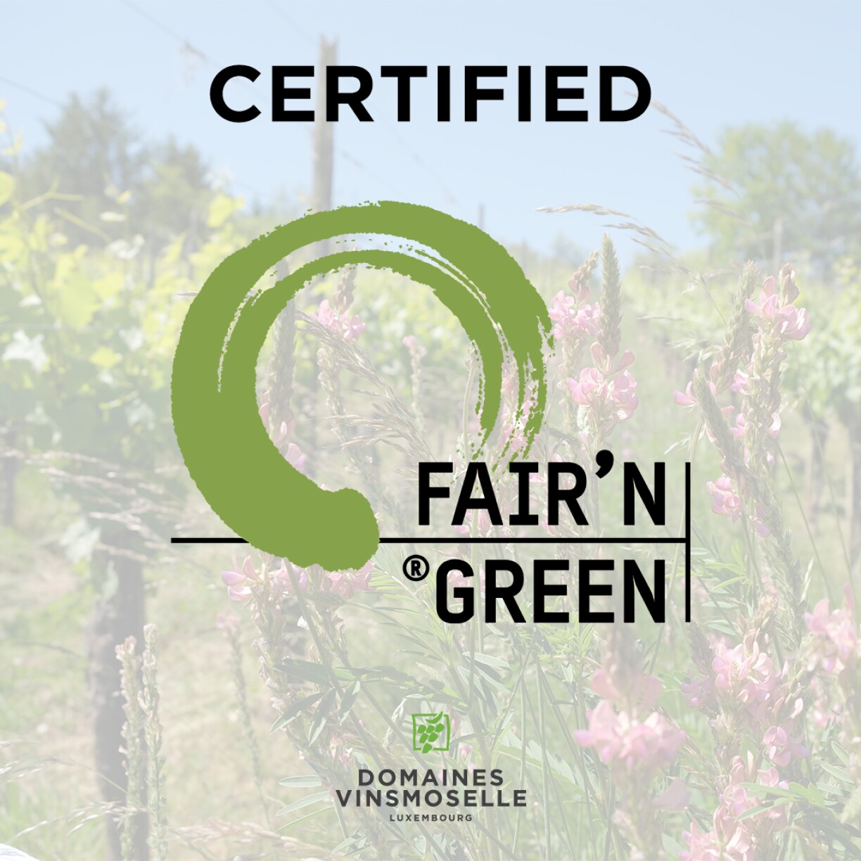 De „FAIR’N GREEN“-Label dréit dozou bäi, well e vu Wënzer fir Wënzer entwéckelt gouf, dee komplette Spektrum vun der Nohaltegkeet ofdeckt, dem Konsument senger ëmmer méi grousser Nofro un nohaltege Produkter gerecht gëtt a mat deem Numm, deen alles ausseet, ass et einfach fir all déi Messagen ze vermëttelen. D’Domaines Vinsmoselle setzen also mat „FAIR’N GREEN“ en Zeechen, dass Nohaltegkeet an de Wäibau Hand an Hand kënne fonctionéieren. An d’Resultat weist sech an der Fläsch an op internationale Concoursen.