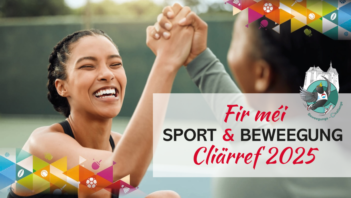 Zesumme mat der Sportskommissioun an de lokale Sportsveräiner invitéiert d’Gemeng Cliärref op déi grouss Bewegungschallenge. Dëst am Kader vun der Campagne „Fir méi Sport a Beweegung – Cliärref 2025“.