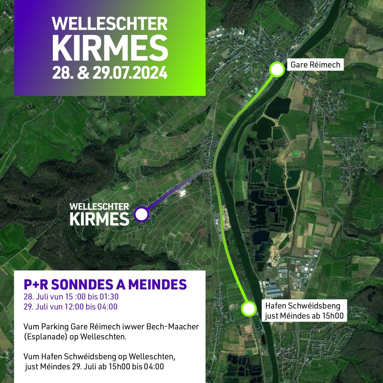 P&R ass dëst Joer zu Schwéidsbeng um Hafen an um Parking Gare Réimech. Kuckt fir d’Detailer op op latenightbus.lu an um facebook vum Syndicat d’initiative Wellenstein.