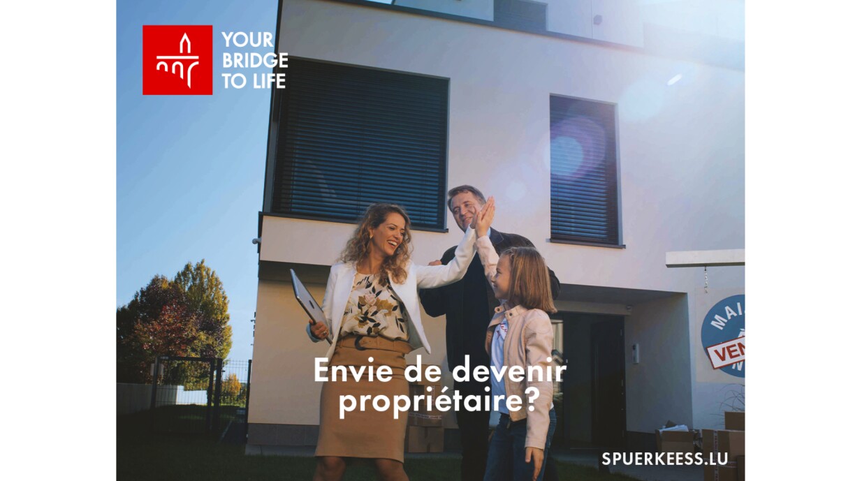Besicht d’Spuerkeess nach bis de 17ten Oktober op hirem Stand an der Luxexpo The Box oder huelt Rendezvous op enger Spuerkeess-Agence fir eng Berodung iwwert de Finanzement vun ärem Projet ; sief et fir ze bauen, ze kafen oder ze renovéieren.