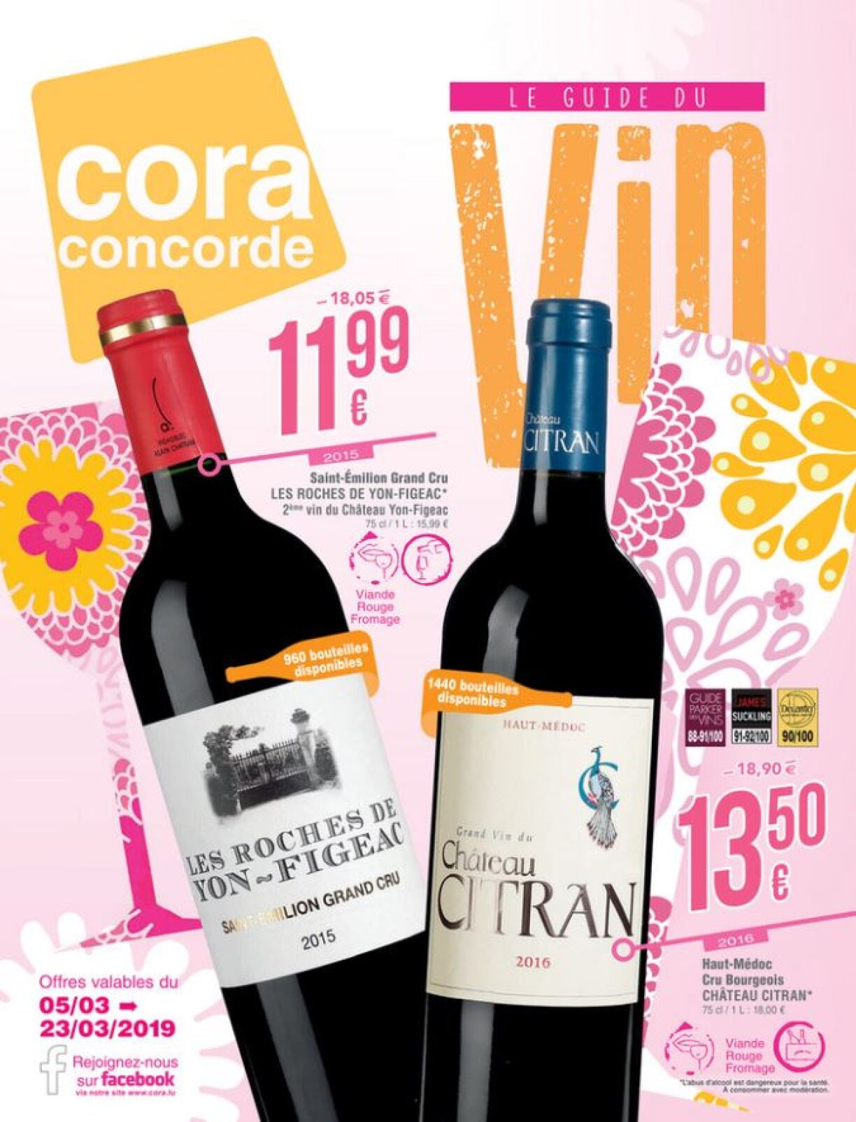 Bis e Samsdeg 23.3. ass nach déi grouss Fréijoërs-Wäifoire am Cora Concorde zu Bartréng. An hierem “Guide du Vin” entdeckt Dir 280 verschidde Referenzen, niewt aneren 200 am Geschäft. Vum Präis hier ass fir jiddereen eppes derbei. Dir fand och eng schéi Selektioun am Schampes, 200 Wäiner vu Bordeaux mat den aussergewéinleche Millésimen 2015 an 2016, 90 Wäiner aus der Vallée du Rhône mat der Côte Rotie a Châteauneuf du Pape, 40 Biowäiner a bei de Wäiner aus aller Welt steet den italienesche Wéngert am Focus. Bei der Degustatioun stinn Iech d‘Sommelieren vum Cora Concorde mat Rot an Dot zuer Säit. D’Detailler vun der Fréijoërs-Wäifoire am Cora Concorde op der Longécher Strooss zu Bartréng, grad esou wéi hiere “Guide du Vin” fand Dir och op www.cora.lu.