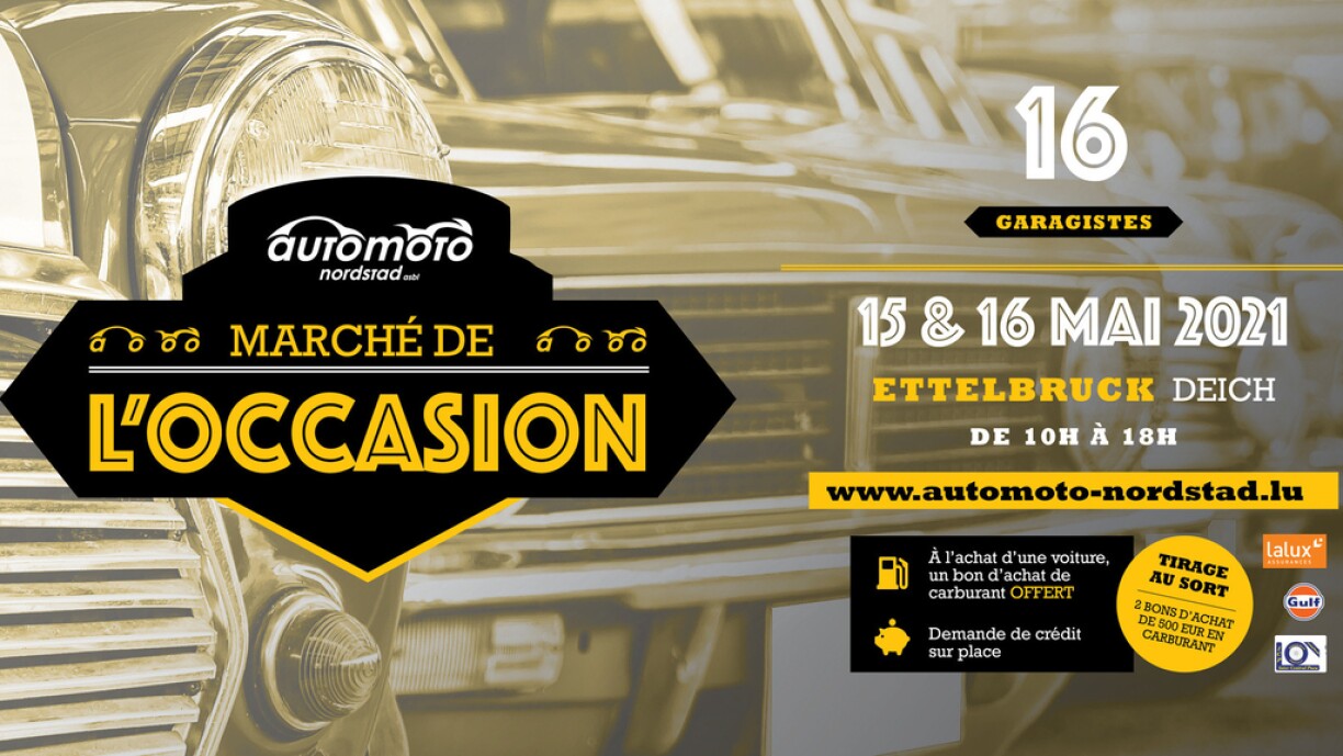 De Stéchdatum fir hei ze profitéieren ass dëse Weekend, 15. a 16. Mee vun 10 – 6 Auer: den Automotonordstad Occasiounsmaart an den Däichwisen. Bei all verkaaften Auto kritt een en Tankbong dobäi a beim Gewënnspill gëtt nach 2 Mol en Tankbong vu 500 € verloust.