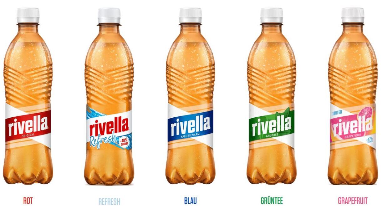 Gutt kal gedronk erfrëschen déi 5 Zorte Rivella dat ganzt Joer, sief et mam originelle Geschmaach oder mat Fruuchtzousaz, light, mat grengem Téi oder an der Versioun Refresh. Zanter e puer Woche gouf elo d’Variant mat Hielenner duerch eng mat Pamplemousse ersat.