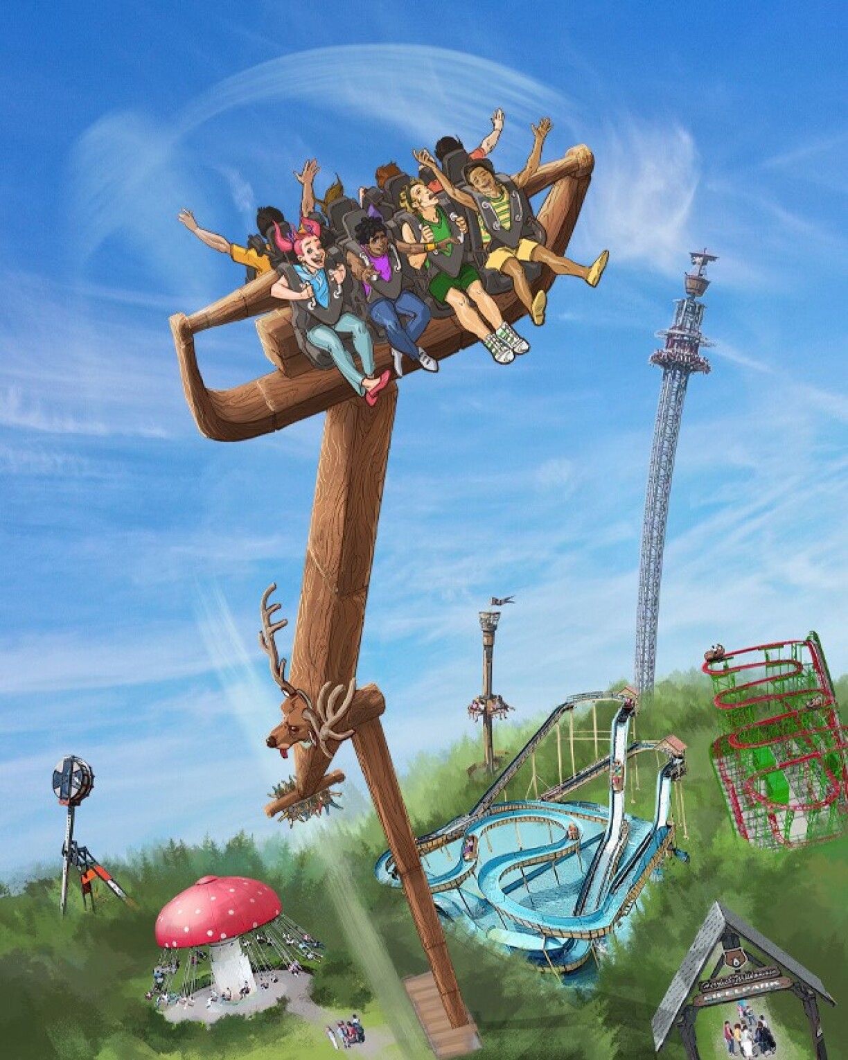 Déi eng heescht „Wildwechsel“ bei där een an engem Woon sëtzt, deen een da selwer mat engem Hiewel kann drifte loossen! Déi aner ass de “Platzhirsch”, mat dem ee 50 Meter duerch d’Luucht gewirbelt gëtt. Dëst sougenannt Loopingkarussel soll de 16. Juni opgoen.