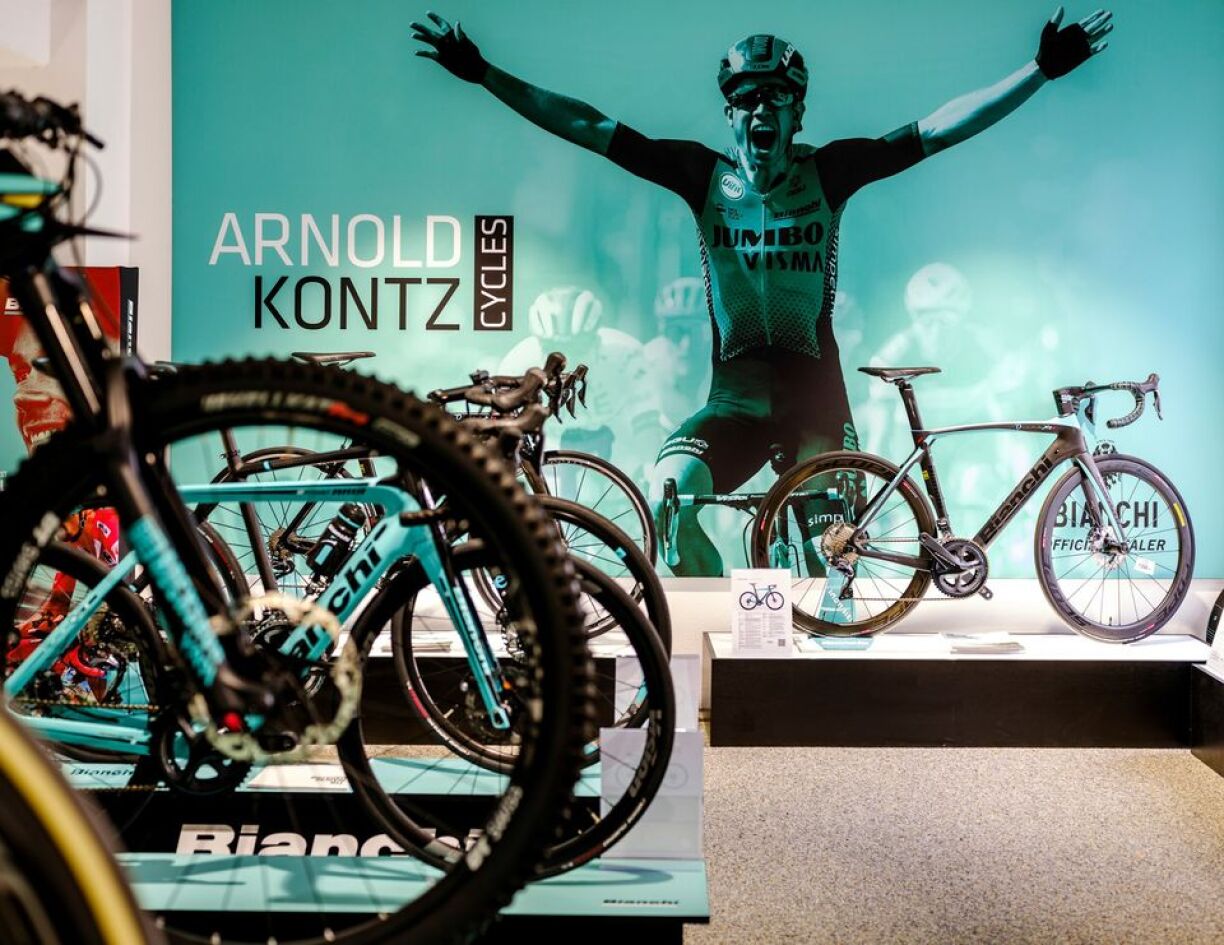 Cycles Arnold Kontz, den eelste Vëlosbuttek am Land, huet a sengem fonkelneie Geschäft op der Gare iwwer 1000 Vëloen op Stock parat.