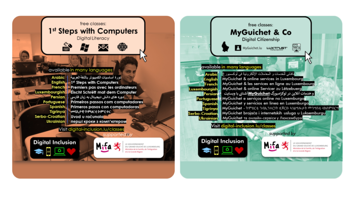 An den anere Coursë léiert Dir dann ënnert anerem den Ëmgang mat MyGuichet, a ville weideren digitale Servicer, déi Iech den Alldag zu Lëtzebuerg vereinfachen!