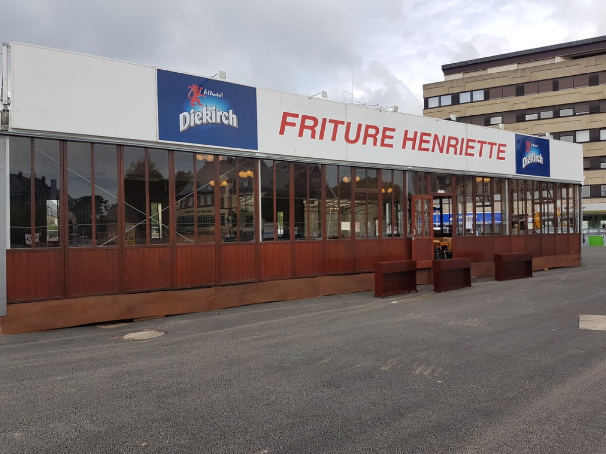 D`Friture Henriette ass einfach ze fannen: deen éischten an der Allée Scheffer, ganz uewen! D`Friture Henriette: de gesellegen a gastronomesche Rendezvous-vous op der Fouer!An elo nei en Take away mat klenge Snacken fir ënnerwee.