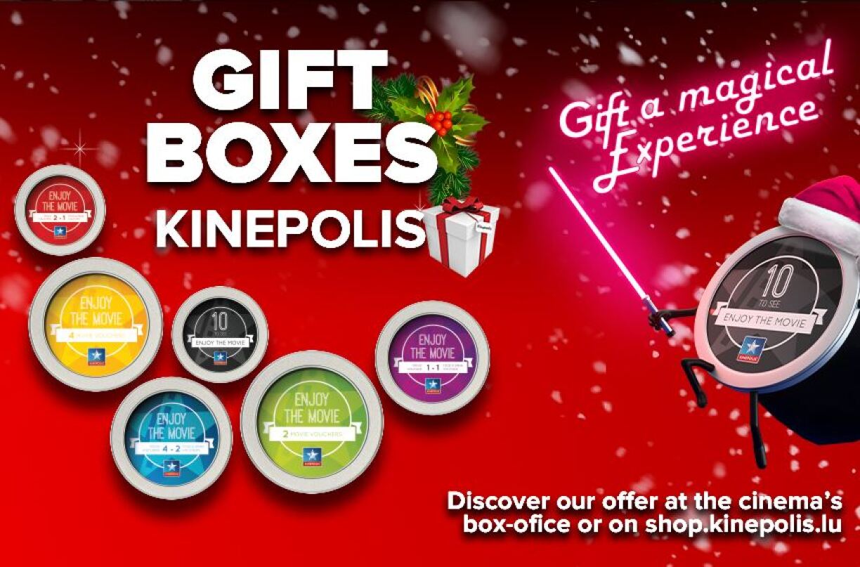 Kinepolis dat ass och d’Magie vun de Geschenker.Mat enger Kinepolis Kaddosbox suergt Dir fir emotional Momenter.