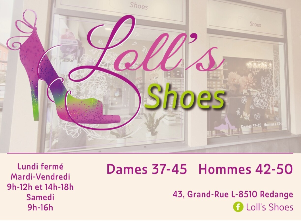 Mei Informatioune fannt Dir op hirer Facebook-Säit Loll’s Shoes oder direkt am Buttik op 43, Grand-Rue zu Reiden un der Atert.