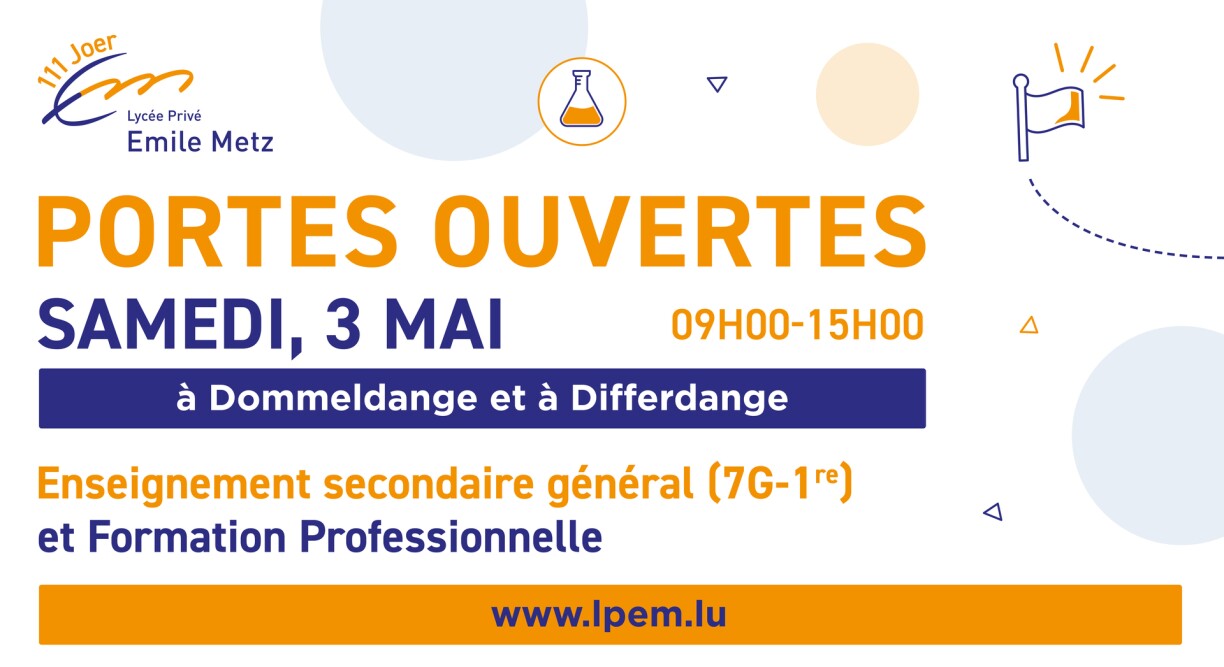 Loosst Iech vum LPEM iwwerzeegen a kommt op eis Porte Ouverte, dëse Samschde vun 9:00-15:00 Auer zu Dummeldeng an zu Déifferdeng.