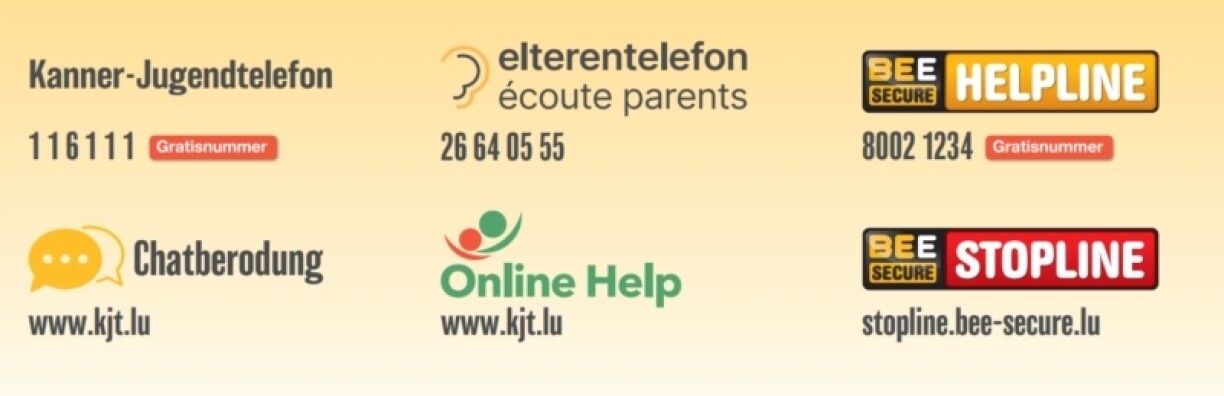 De KJT hëlleft jidderengem dee well schwätzen oder och per Chat anonym mat engem schreiwen. Si hunn en oppent Ouer fir jiddereen deen no Rot sicht.