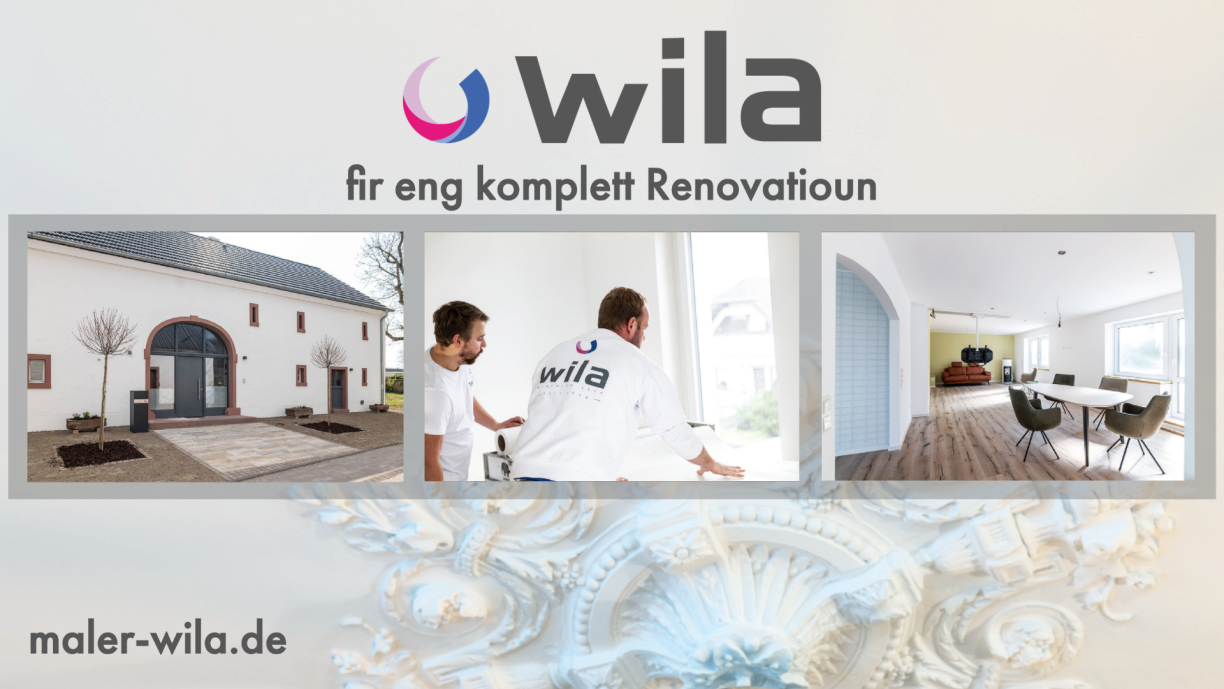 Lauschtert dës ganz Woch géint 13:30 eise Living um RTL a kuckt elo schonn op www.maler-wila.de.