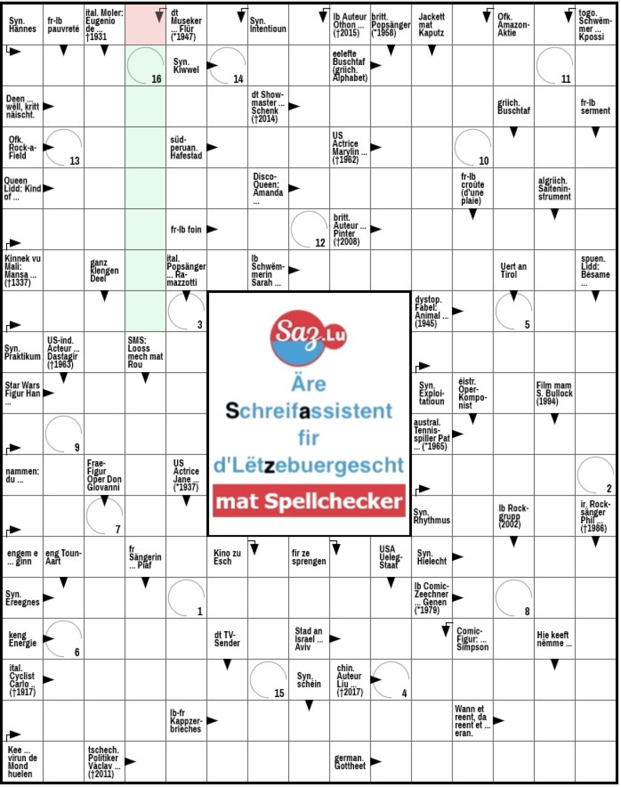 Loscht op en neit Online-Kräizwuerträtsel (KWR) integral op Lëtzebuergesch? Voilà!
