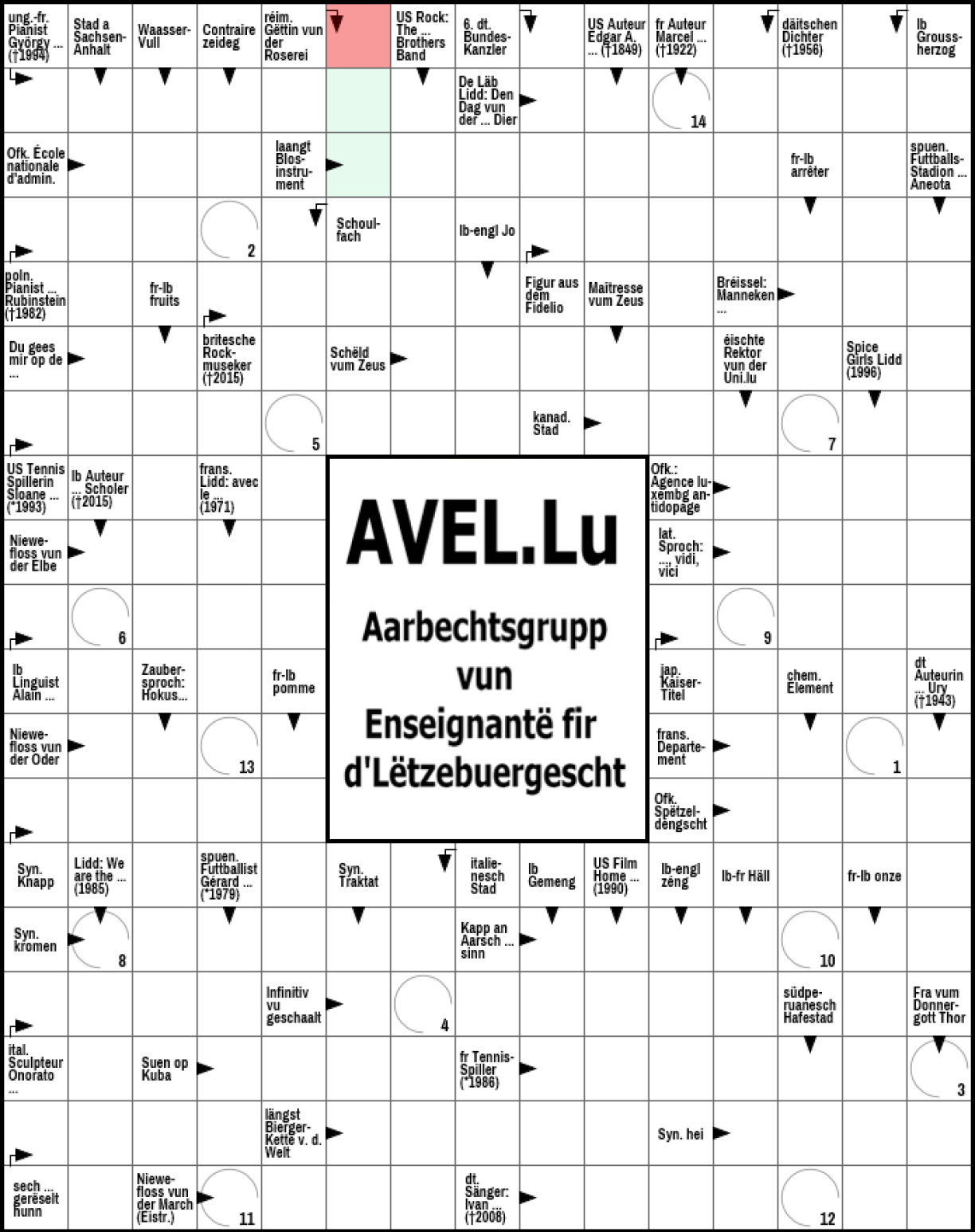 Nummer 110En neit Online-Kräizwuerträtsel ganz op Lëtzebuergesch