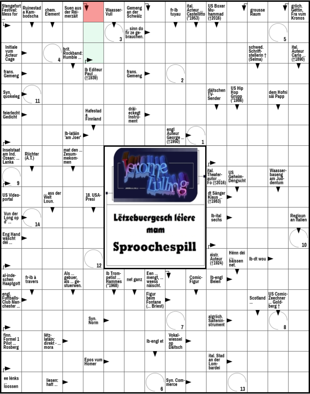 Merci soe mer dem Linguist Jérôme Lulling, deen et mat senger Wierder-Datebank méiglech gemaach huet, datt dës Online-Kräizwuerträtselen entwéckelt konnte ginn.